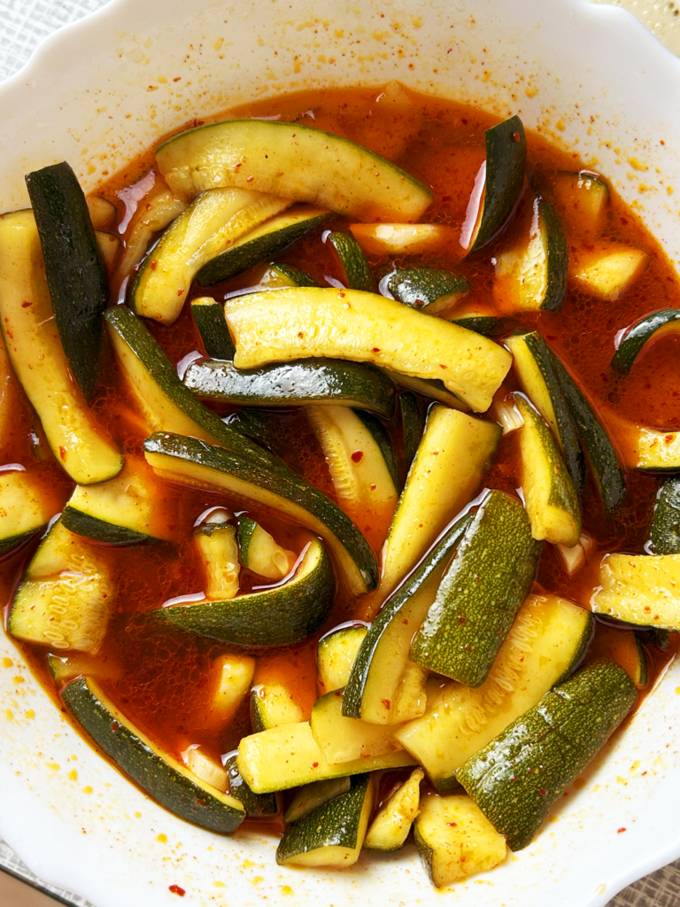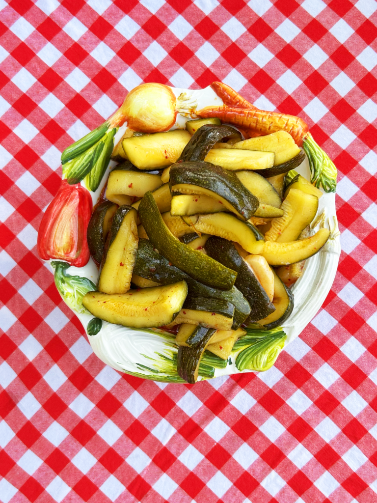 AKA Cukinia w zalewie sweet chilli, bo okazuje się, że przepis babci mojej koleżanki Uli na ogórki idealnie (żeby nie powiedzieć JESZCZE LEPIEJ) sprawdza się również przy cukinii…