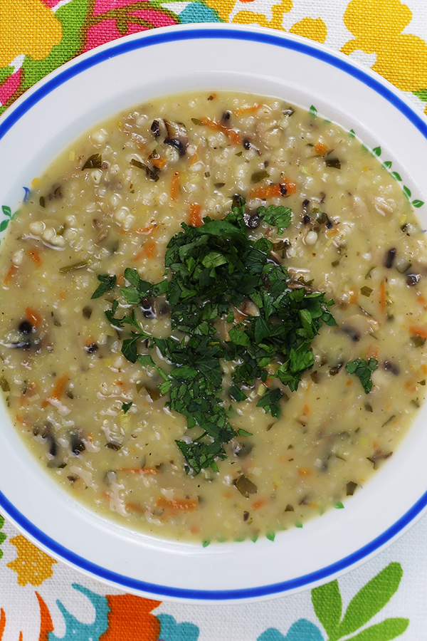 Na przedfinałową zupę Zupanuary 2025 wybrałam babciny comfort food – wegańska zupa pieczarkowa z kaszą jęczmienną. Gęsta, intensywna w smaku, kojąca żołądek i nerwy. Poczujcie się bezpiecznie przed jutrzejszym eksperymentem 🤭