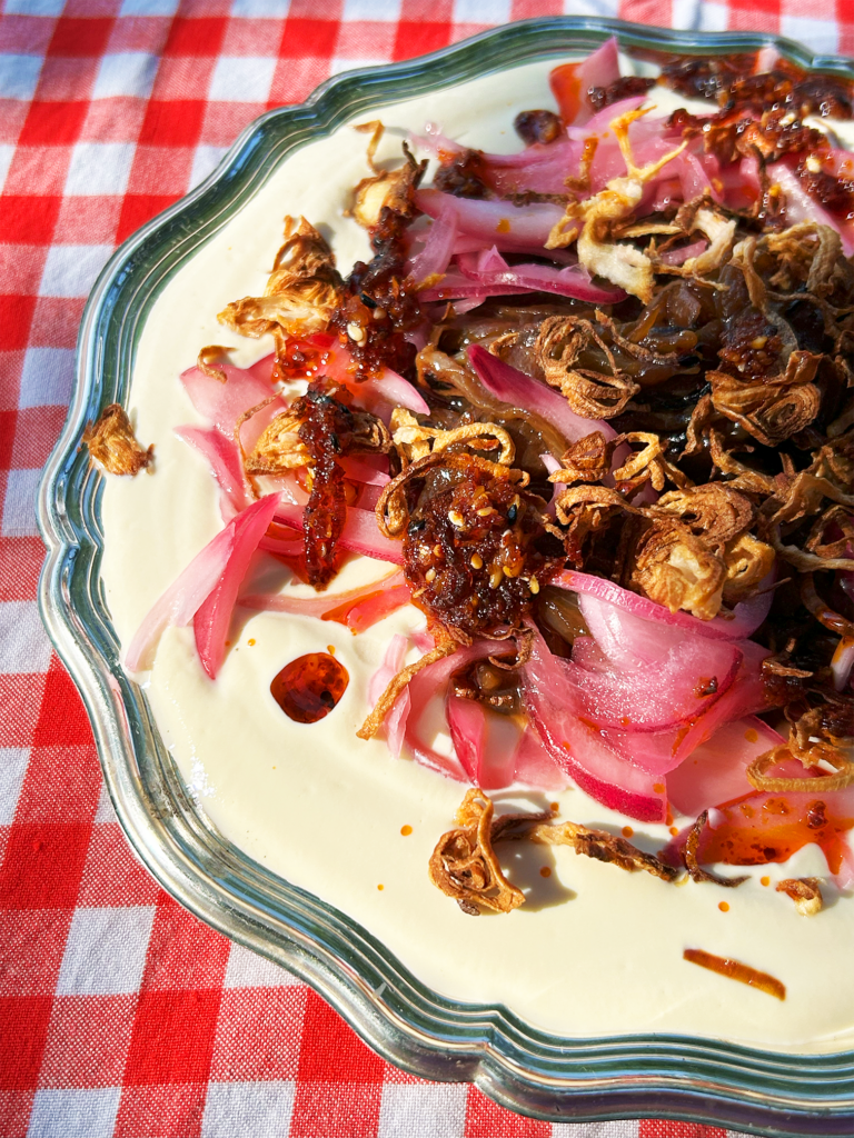 2. Na tofu zrób artystyczną i wykwintną aranżację z trzech rodzajów cebuli 👑🧅
