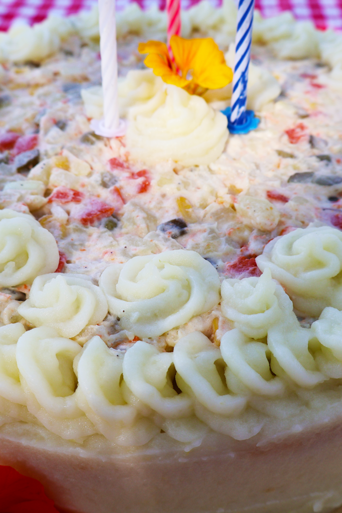 Tort ten ma wiele składowych, pozwoliłam sobie rozpisać je w osobnych postach, żeby łatwiej było się odnaleźć i skorzystać tylko z tych odnośników, których będziecie potrzebować, wszak każd_ z nas ma swoje przepisy na farsz ruski, sałatkę ziemniaczaną, placki … O ILE W OGÓLE KTOŚ SIĘ PORWIE NA ODTWORZENIE TEGO POTWORA 🧌