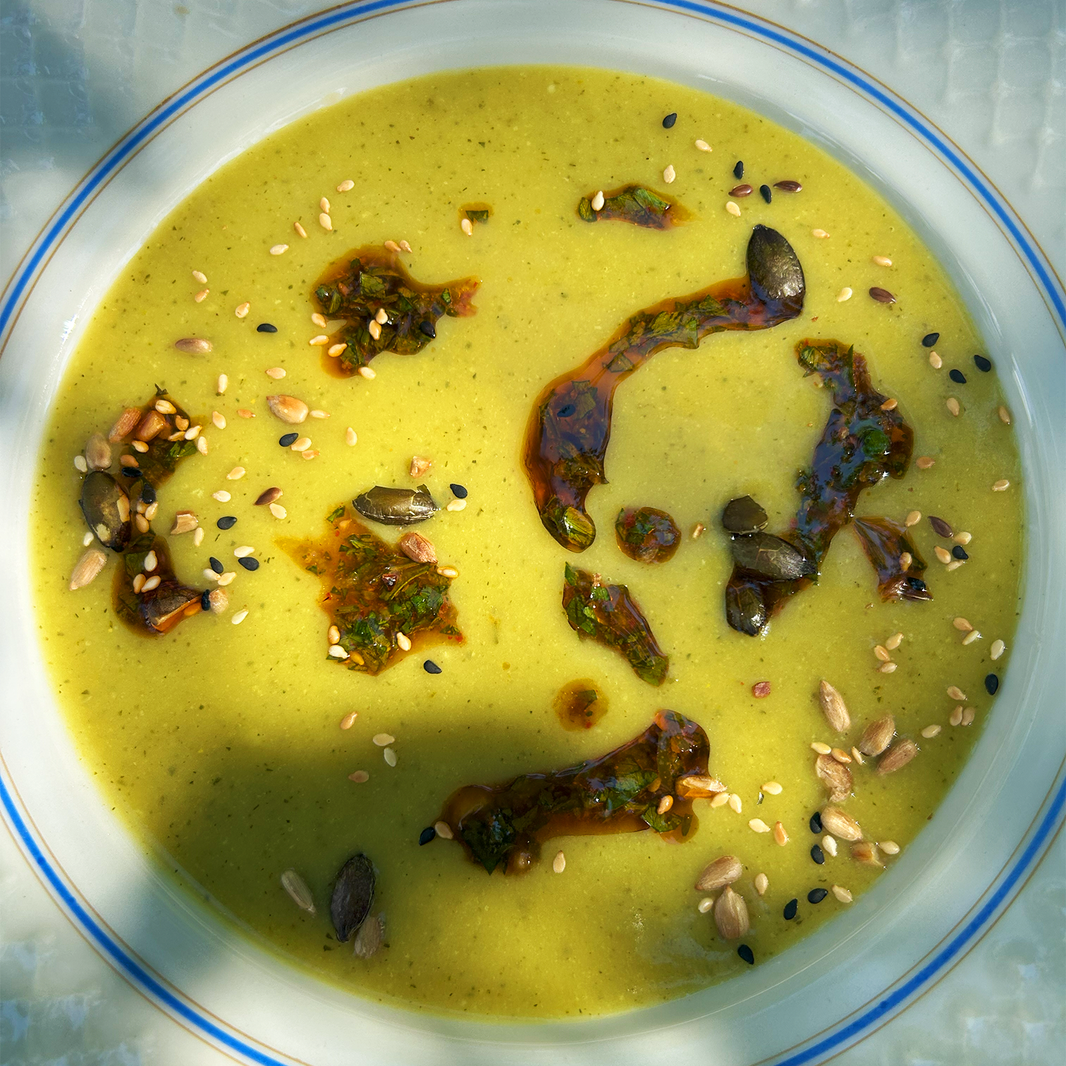 Kokosowo-limonkowy krem z cukinii z dodatkiem sosu inspirowanego chimichurri