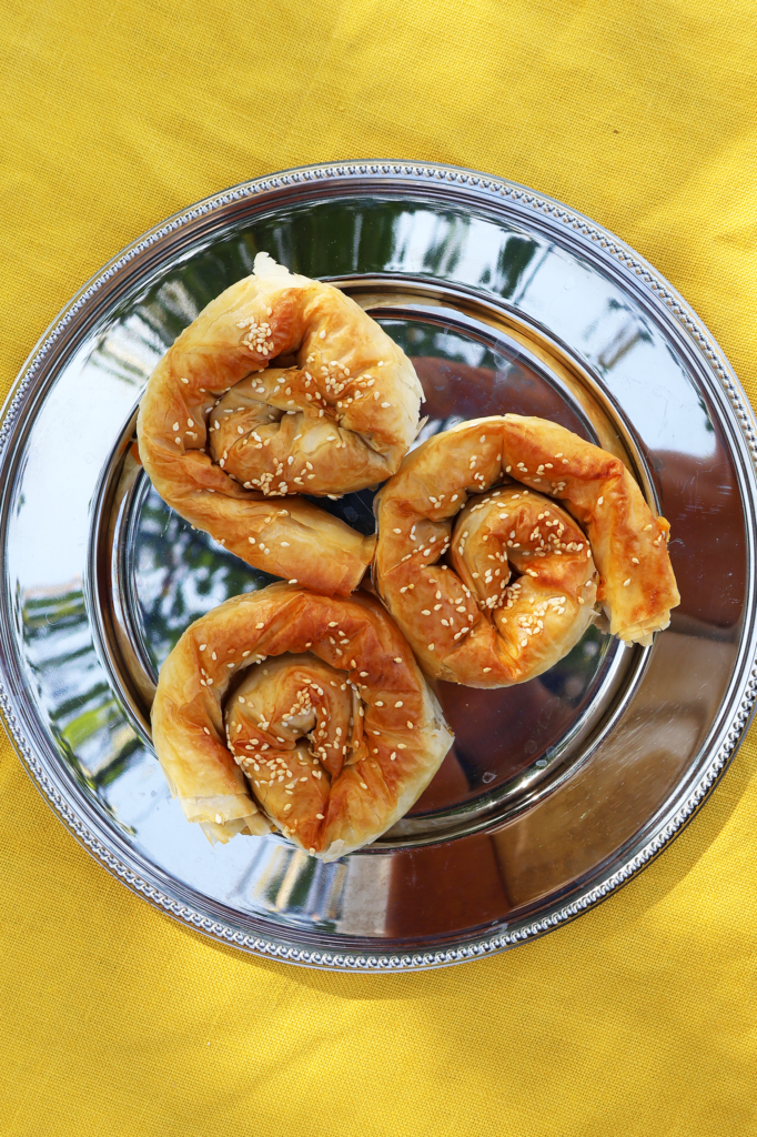 2. Na blacie rozłóż jeden arkusz ciasta filo i posmaruj go w całości rozpuszczonym masłem a następnie przykryj go następnym arkuszem. Nie muszą do siebie idealnie przylegać, wręcz przeciwnie. Im więcej zagięć, falbanek i bąbelków powietrza tym bardziej chrupiący będzie burek.