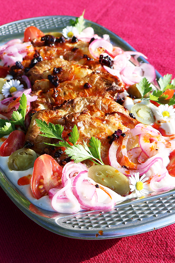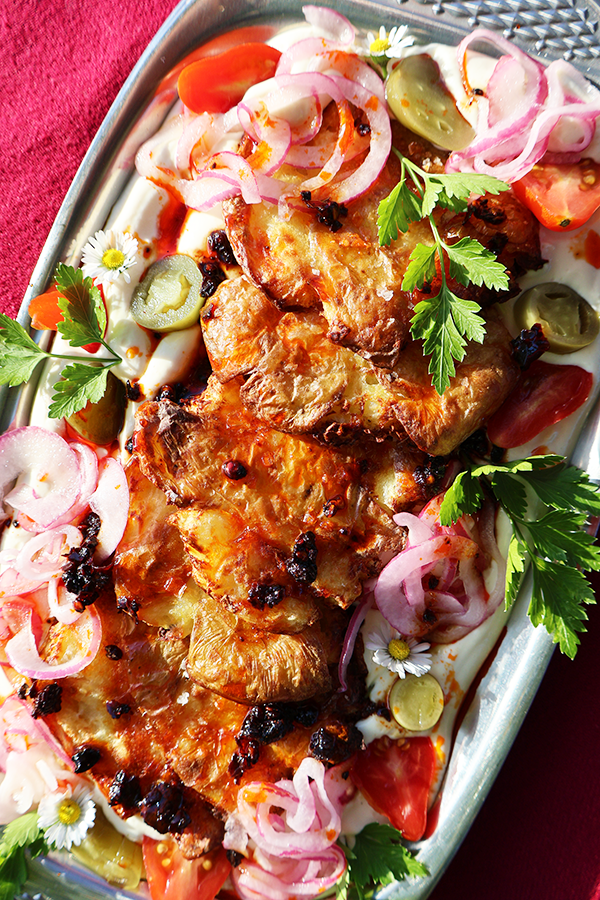 Te zmiażdżone ziemniaki z air fryera to recepta na chrupiący comfort food o jakim nie śniliśmy, ale na który zasługujemy. Skąpane w słodko-umamicznym oleju chilli, zatopione w kremowym tofu pod posypką z Twoich ulubionych pikli i dodatków zachwycą miksem smaków i tekstur nawet ziemniaczanych sceptyków.