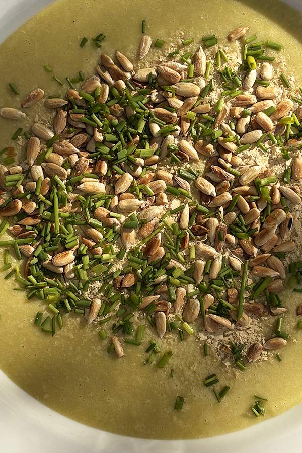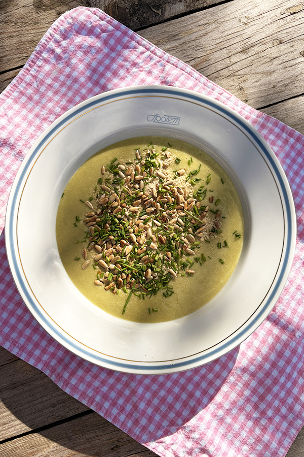 - Zupę podawaj z dodatkiem posiekanego szczypiorku, prażonego słonecznika i płatków drożdżowych.